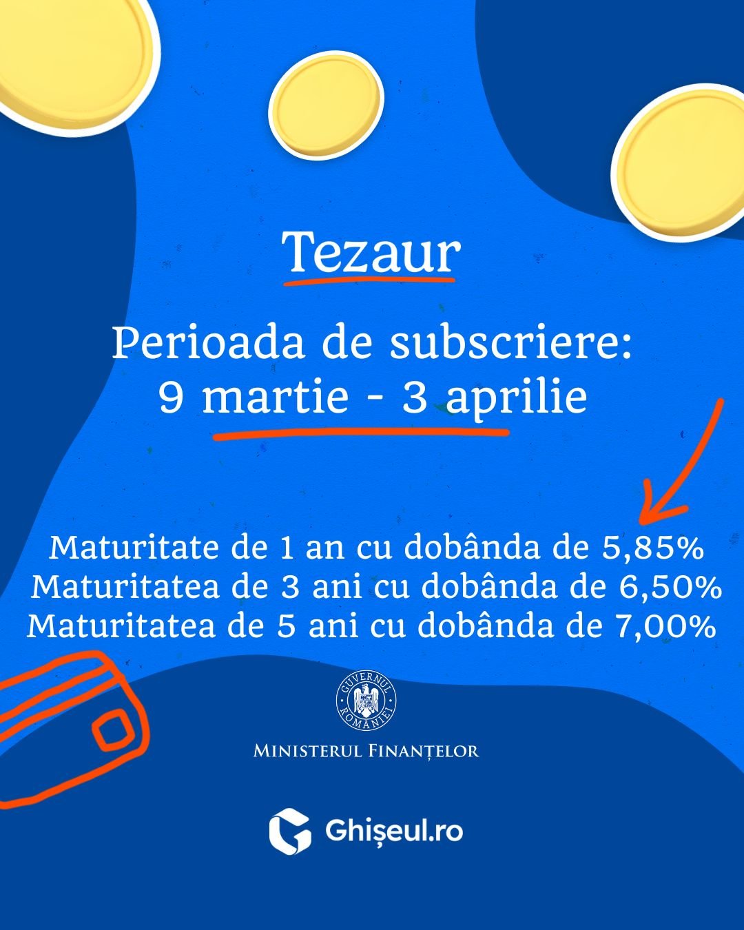 Pentru că primăvara înseamnă noi începuturi, este momentul perfect pentru o nouă oportunitate de economisire, sigură și avantajoasă. În perioada 9 martie 2026 – 3 aprilie 2026, românii pot subscrie în titlurile de stat cu maturități de 1, 3 și 5 ani și dobânzi anuale de 5,85%, 6,50%, respectiv, 7%.