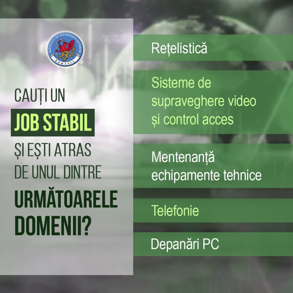Ți-ai dori să faci parte din echipa SIE? Ai cunoștințe tehnice, vorbești o limbă străină și îți dorești să fii angrenat în misiuni în afara țării?